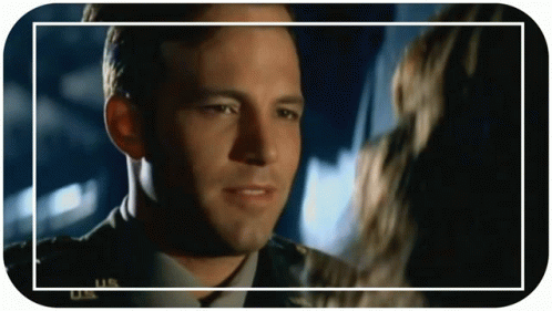 Ben Affleck, handsome in his military uniform, looks intently at a woman in a scene from Pearl Harbor.