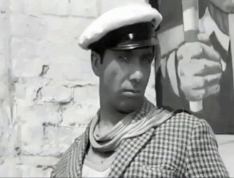The iconic character Ostap Bender, wearing a cap and checkered jacket, looks directly at the camera and smiles.