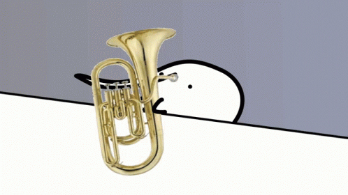 An animated Berd character plays a baritone instrument as part of the Berd Toot Band.