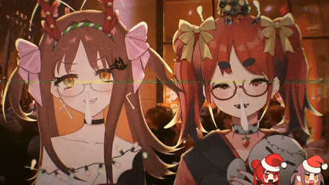 two anime girls are standing next to each other
