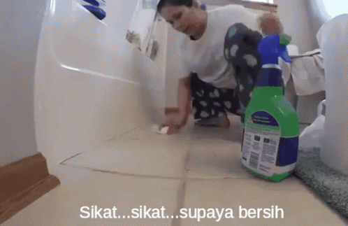 A woman diligently cleaning the bathroom floor, scrubbing until it's sparkling clean.