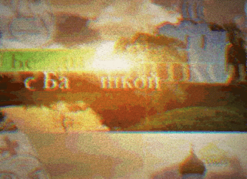 Heavily glitched video featuring a Russian Orthodox church and distorted text, reflecting the 'Troubles with a head' meme.