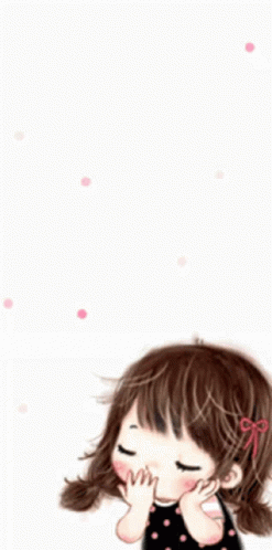 Cute cartoon girl blowing a kiss with a butterfly flying around her, set against a white background with pink dots.
