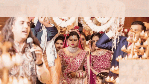 A beautiful Indian bride in a traditional red lehenga walks during her wedding ceremony in Jaipur, captured by a candid wedding photographer.