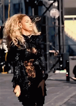 Beyoncé's energetic and sassy dance performance, featuring her iconic hair flip on stage.