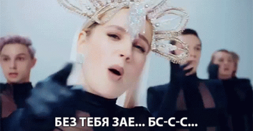 Klava Koka performs her song 'Without You', wearing a distinctive crown and singing with emotion.