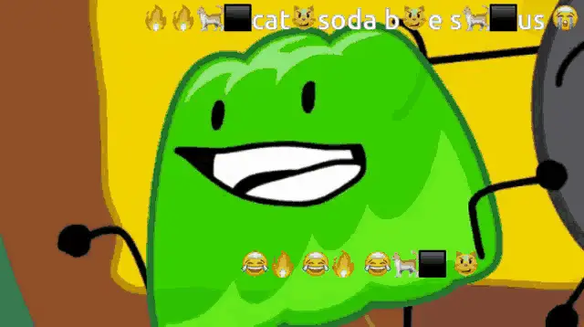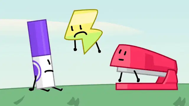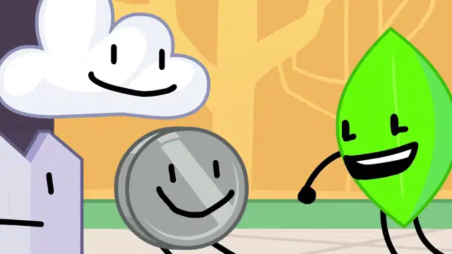 The animated character Teardrop from BFDI/BFB changes expressions, showcasing a determined look and a big smile.