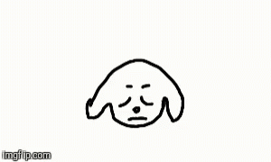 A cute, hand-drawn dog expresses 'I Miss You' with a sad, squinting face in a simple animation.