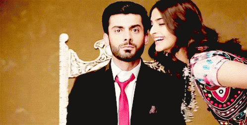 Fawad Khan and Sonam Kapoor share a playful moment, with Sonam laughing and Fawad looking on.