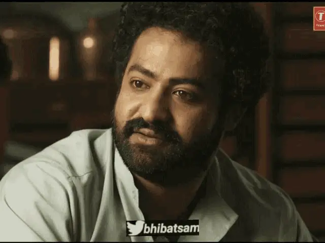 Pawan Kalyan in a scene from Bhibatsam Jalsa, speaking emphatically with the caption 'Kastalu Ela Untayo Nenu Cheptanu Nuvu Vinu'.