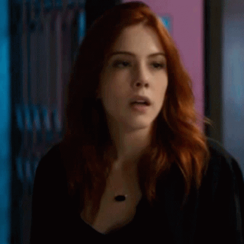 Bia Arantes, with her red hair, makes a distinct pointing gesture while wearing a black shirt.