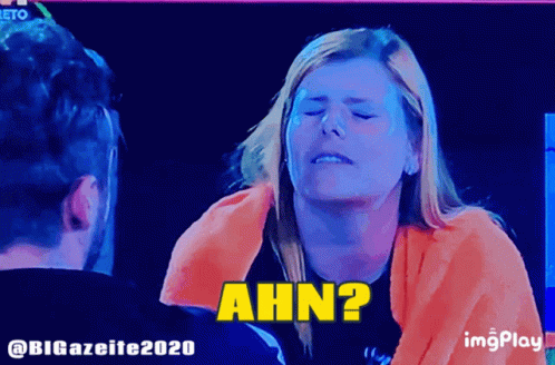 A woman from Big Brother Portugal reacts with a confused "Ahn?" on screen.