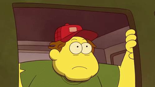 Bill Green from Big City Greens looks surprised while pointing upwards, wearing his signature red cap and green shirt.
