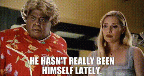 Leah Fuller and Big Momma in a scene from Big Momma's House, with the caption 'He hasn't really been himself lately.'