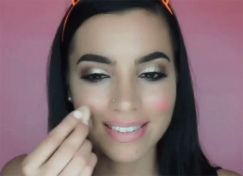 Bilintina Bilintinamakeup applies blush to her cheeks, wearing a cat ear headband and full makeup.