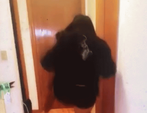 A person in a black hoodie and shorts performs a dance, possibly twerking, in a doorway, celebrating a birthday.