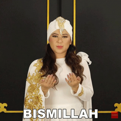 Tiara Marleen says 'Bismillah' in a white and gold dress, offering a prayer.