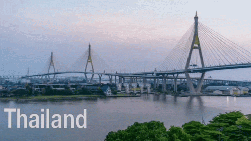 The iconic Bhumibol Bridge in Bangkok, Thailand, transitions from dusk to a vibrant night display with colorful lights.