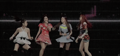 Blackpink's Jennie, along with Rose and Lisa, performs on stage with dynamic choreography.