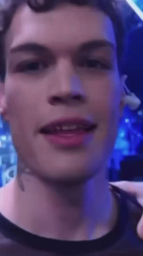 Italian singer Blanco makes a funny face, sticking out his tongue during the Sanremo Music Festival.