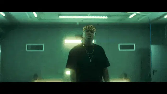 Blaque Ivory, a cheerleader in a green 'Clovers' uniform, performs a dynamic dance routine in a gym.