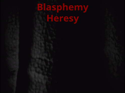 Two nuns react with shock and disapproval as the text 'Blasphemy Heresy' appears on screen.