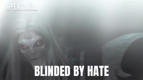 Karthus from League of Legends, a monstrous figure with glowing red eyes, featured with the text 'Blinded By Hate'.