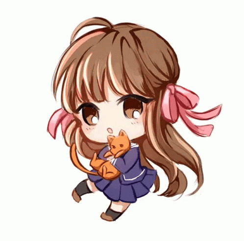 Chibi Tohru Honda from Fruits Basket holding Kyo Sohma in his cat form.