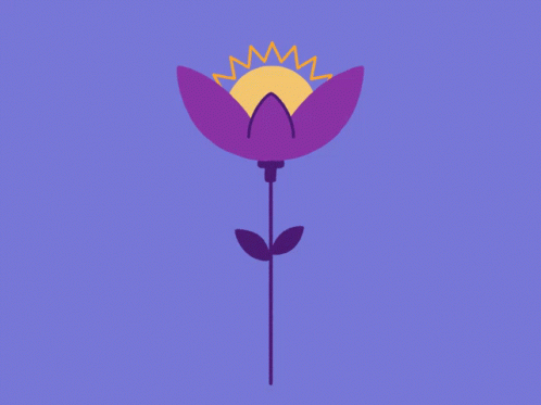 A purple tulip flower blooming with a bright yellow sun rising behind it, symbolizing a good morning.