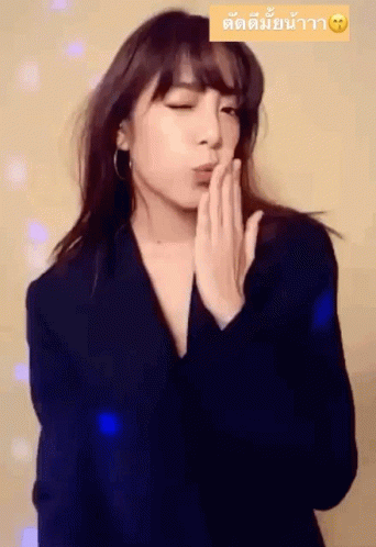 เมย์โกะ blows a charming kiss, winking and smiling in a stylish black blazer.