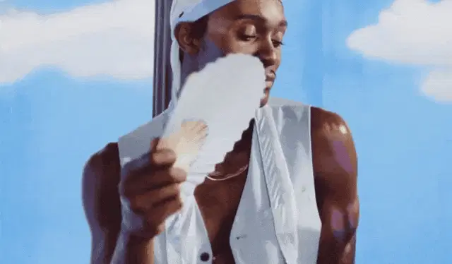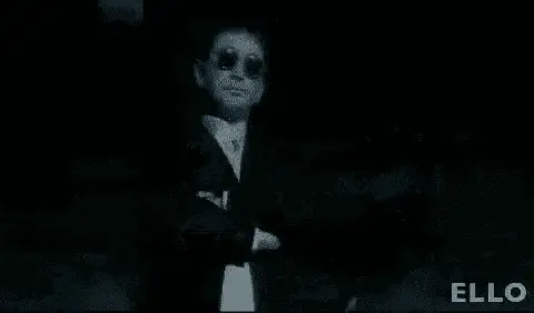 Melissa Chase looks bored, resting her chin and puffing out her cheeks in front of a periodic table.