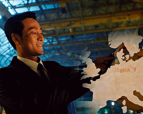 Song Jung Ho, dressed in a suit, smiles while pointing at Berlin on a map of Germany.