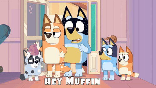 Bandit Heeler steps on something painful and exclaims "Coconuts!" while with Bluey, Bingo, Muffin, Chilli, and Socks.