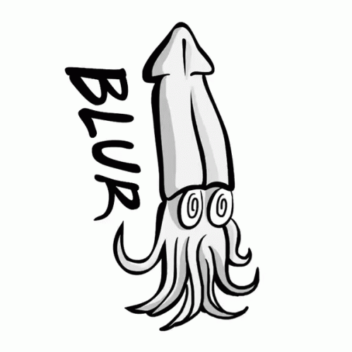 A blurry cartoon squid, Blursotong, with 'BLUR' text, looking confused with spiral eyes.