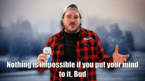 Man in plaid shirt holding a Bud Light can, sharing an inspirational message: 'Nothing is impossible, Bud'.