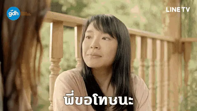 Plearnpichaya Komalarajun (June BNK48) from Bad Genius The Series in a close-up, saying 'Sorry'.