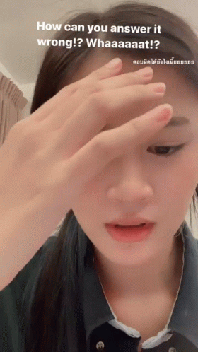 Faii Bnk48 reacting with a hand on her forehead, questioning "How can you answer it wrong!?"