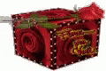 A beautiful red gift box filled with red roses and adorned with a bow, conveying a 'Boa Noite' message.