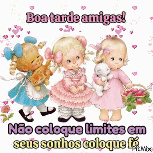 A sweet animated greeting card with three little girls, wishing 'Good afternoon friends' and encouraging faith.