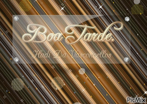 A greeting card image featuring 'Boa Tarde' and 'Hadi Da Vasconcellos' on a shimmering, golden background.
