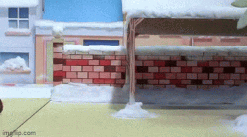 a brick wall is covered in snow and a roof is covered in snow .