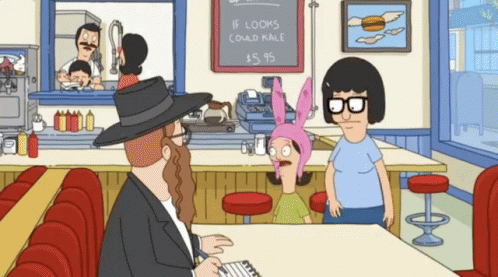 Tina Belcher and a Jewish character from Bob's Burgers have a conversation about Palestine in the diner.