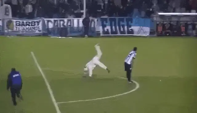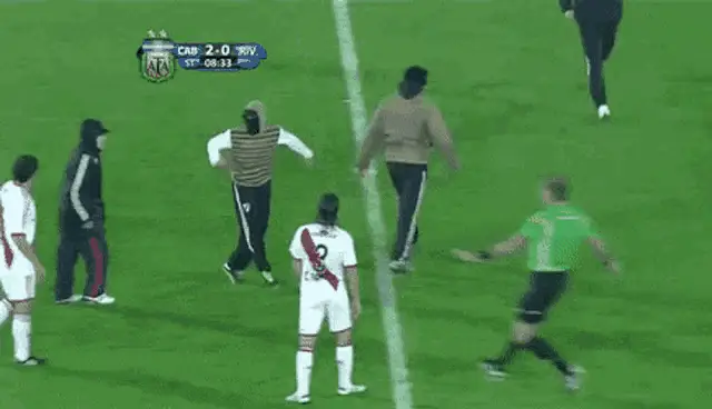 Boca Juniors and Riber Plate players on the field during a football match in a packed stadium.