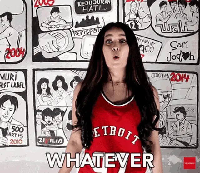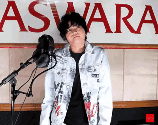 Gunawan expresses 'Bodo Amat!' (I don't care!) while sitting on a couch in a blue suit.