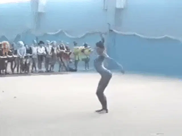 Corl Horl performs a flexible body stretching pose, putting on sunglasses and bending forward.