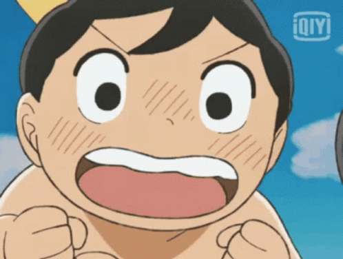 Bojji, the prince from Ranking of Kings, speaks with an expressive, open-mouthed face.
