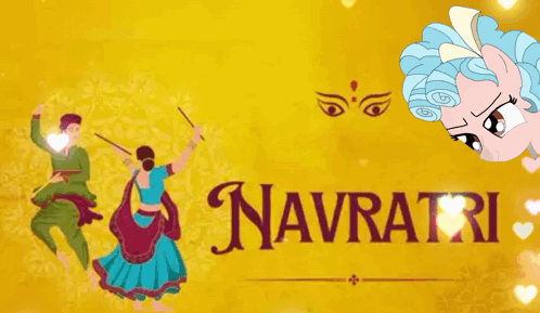 Cozy Glow wishes a Boldog Navratrit (Happy Navratri) with traditional dancers and festive imagery.