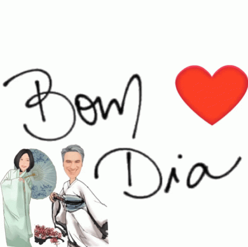 A cheerful 'Bom Dia' (Good Morning) message with a red heart, featuring a drawing of a man and a woman.