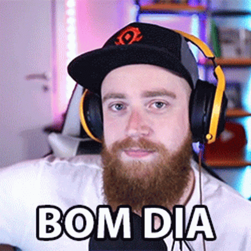 Luba TV's Luba greets viewers with 'Bom Dia' while wearing headphones and a cap.