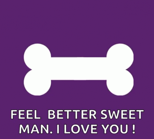 A graphic of a broken bone with a heartfelt 'Feel Better Sweet Man. I Love You!' message.